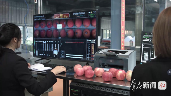 传送带上,一颗颗红彤彤的苹果经由总共非常的“体检通谈”,材干到打包工东谈主的手中。这条法国入口的迈夫4.0智能选果线,像是给苹果拍“CT”,果形、大小、光辉、糖度、硬度、霉心病……40多项相关逐个被精确检测出来。选果线每小时不错处理4吨苹果,精度可达毫米级,肉眼无法分袂的里面纰谬,完全在屏幕上拨云见日。