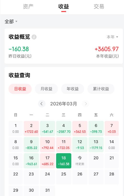 基少隆重账户市值24.77W(90%大家均衡精选10%基少现款+),昨日小亏160元,3月累计战损扩大到2391元,今年盈利3606元,近期盈利缩水。